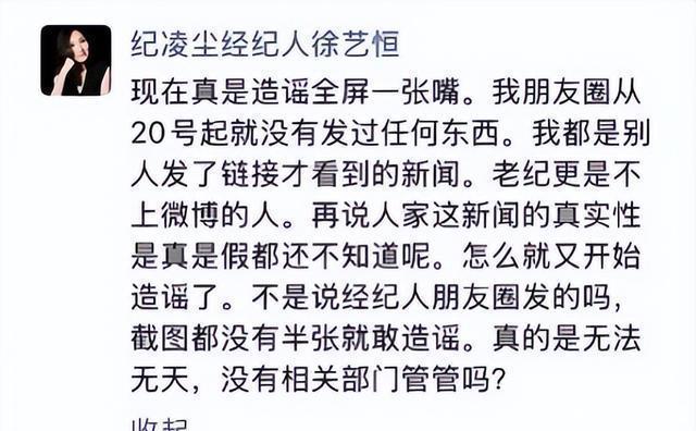 这种无底线的蹭热度操作,直接惹毛了的纪凌尘的经纪人,直接下场怒怼“造谣全凭一张嘴”。 明确表示自己是清白的,朋友圈已经快半个月没动静了,而老纪更是就不怎么上微博,此事和他压根没关系。